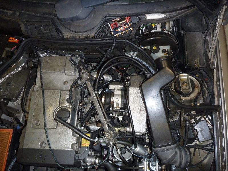 Hier seht ihr den ursprünglichen Weg des Gases vom Verdampfer zum silbernen Filter über den Gasdrucksensor zum Rail. Alles megaeng und der größte Nachteil offenbarte sich später. Aber erst mal drinnen und Karre lief (auf Benzin natürlich, die gesamte Elektrik fehlte ja noch). Aber im großen und ganzen sah es gut aus, da man von der Anlage eigentlich fast nix sah: